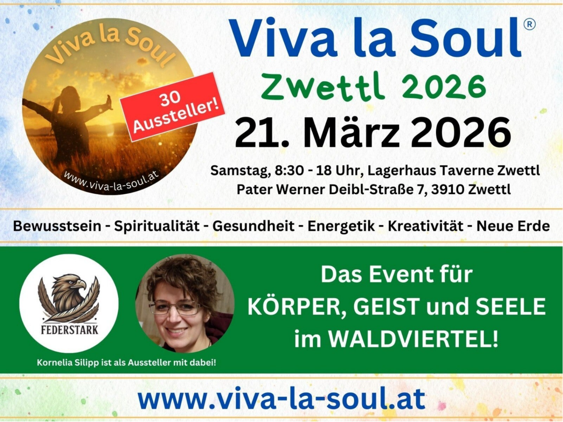Auf der Viva la Soul Messe präsentiere ich meine Arbeit mit Klient:innen sowie Balance Flow – meine eigens entwickelte Anwendung, die individuell auf unterschiedliche Themen abgestimmt ist und Menschen auf ihrem persönlichen Weg begleitet.